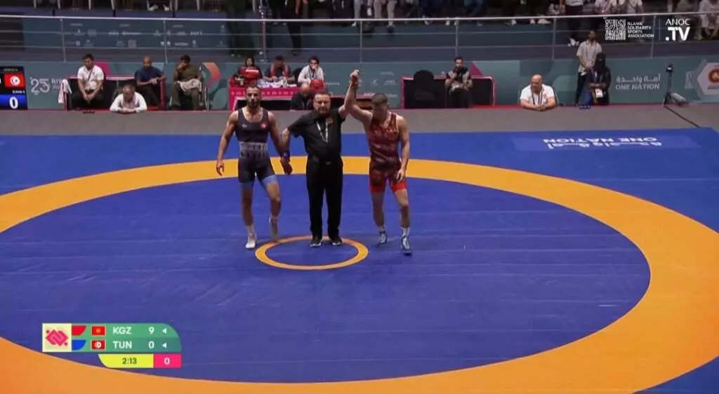 - سجّل المصارع سامي سلامة هزيمة في الدور ثمن النهائي لوزن -77 كغ أمام القرغيزي Akzhol Makhmudov بنتيجة 0-9 بعدم التكافؤ.