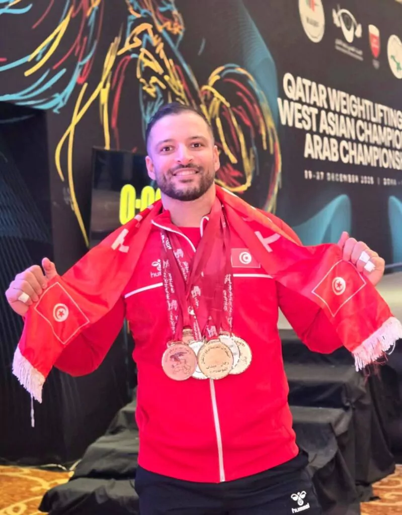 ست ميداليات للربّاع التونسي كارم بن هنية في البطولة العربية وكأس قطر الدولية لرفع الأثقال